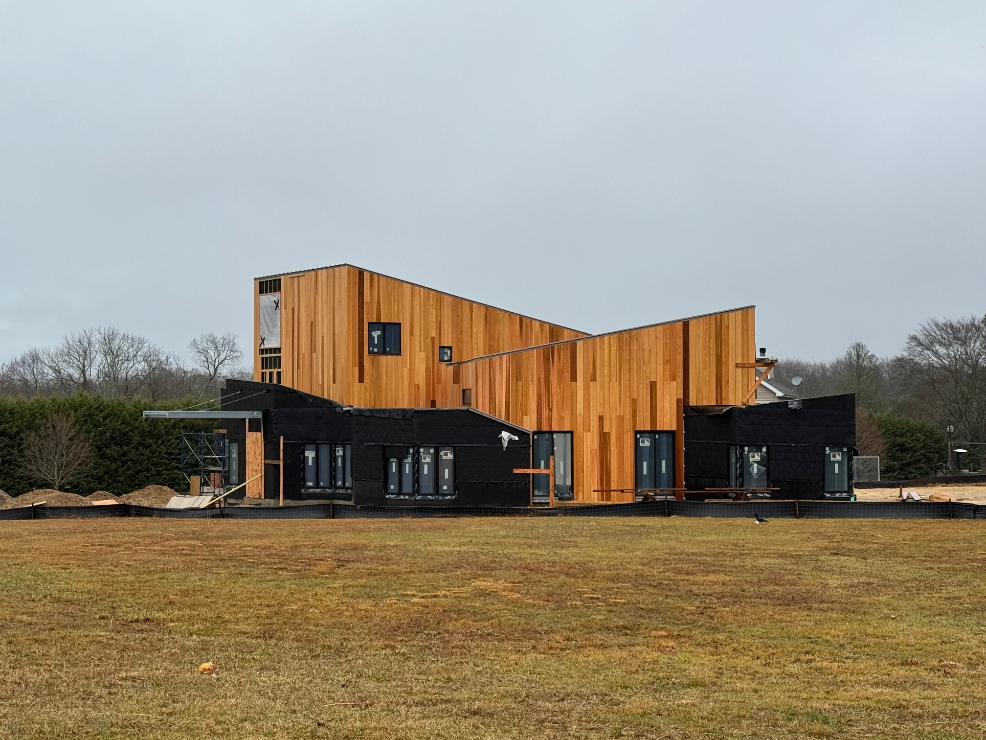 This contextual Hamptons home operates between the ancient and the modern, anchoring itself to the historic farmland to the north and state forest to the south. The architecture draws strength from this duality as its two countering rooflines gesture to both. The duality is furthered through two contrasting materials of Indiana limestone and wide-plank cedar.