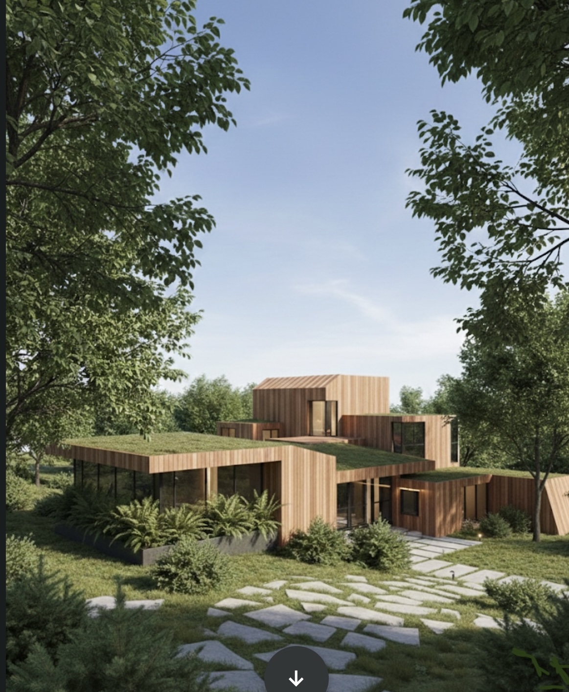 Movement through the house is deliberate and ceremonial: a drawbridge-like path crosses a reflecting pool into a central courtyard garden, then continues upward to earth-insulated roof terraces. The limestone “forts” signal the more intimate spaces– a reading nook, den and primary bedroom. They also suggest the creamy palette of the Hamptons beaches. The reading fort is clad inside w grotto-like volcanic tile, reinforcing a sense of refuge. Adjacent to that is the soaring great room, with a ceiling of reclaimed beams inspired by the ancient